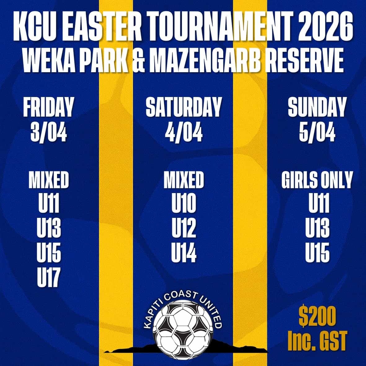 Email seniors: clubcaptain@kcu.co.nz